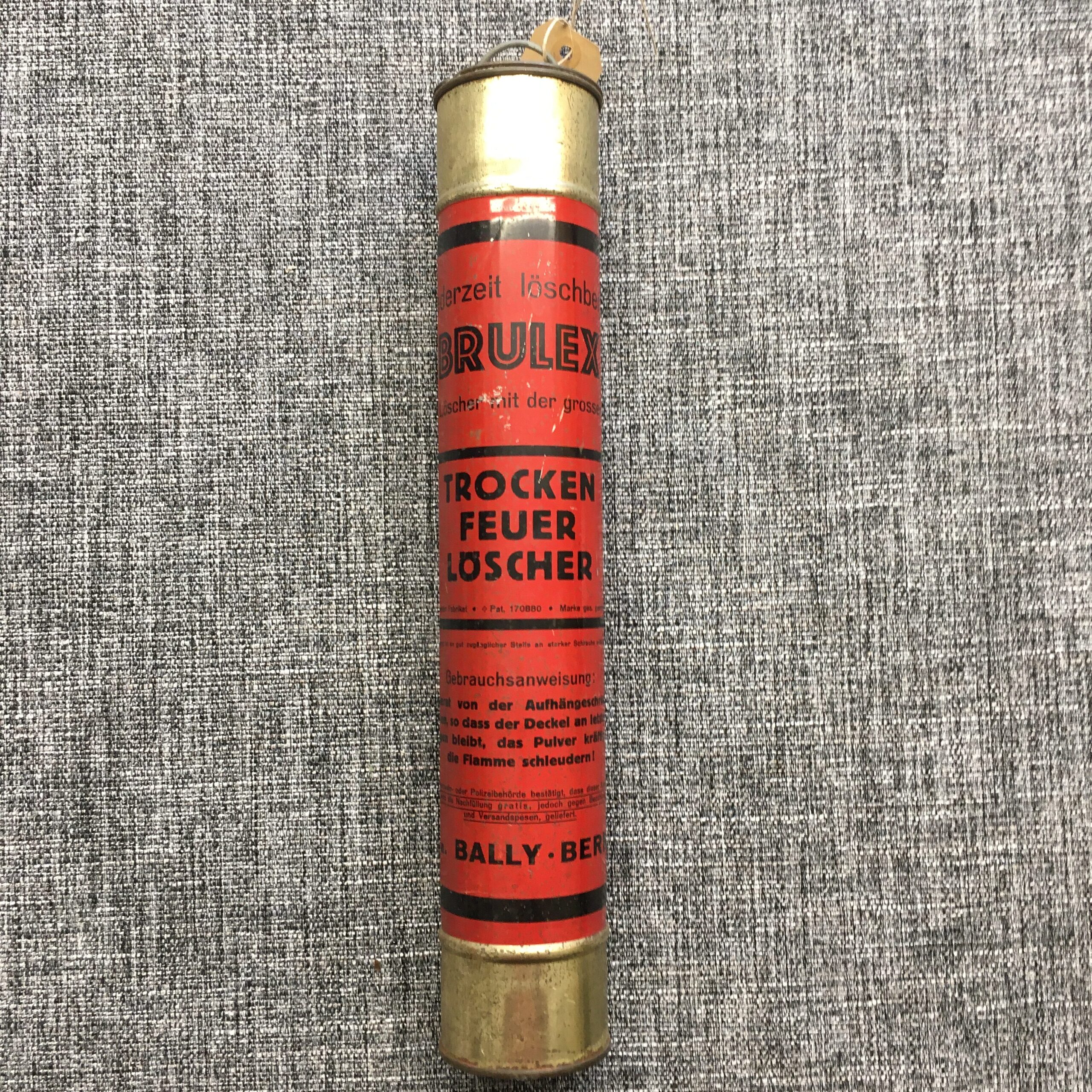 Trocken Feuerlöscher, Schweizer Fabrikat, Patent 170880, Familie Bally Bern, Höhe ca. 41 cm, Durchmesser ca. 7.5 cm
