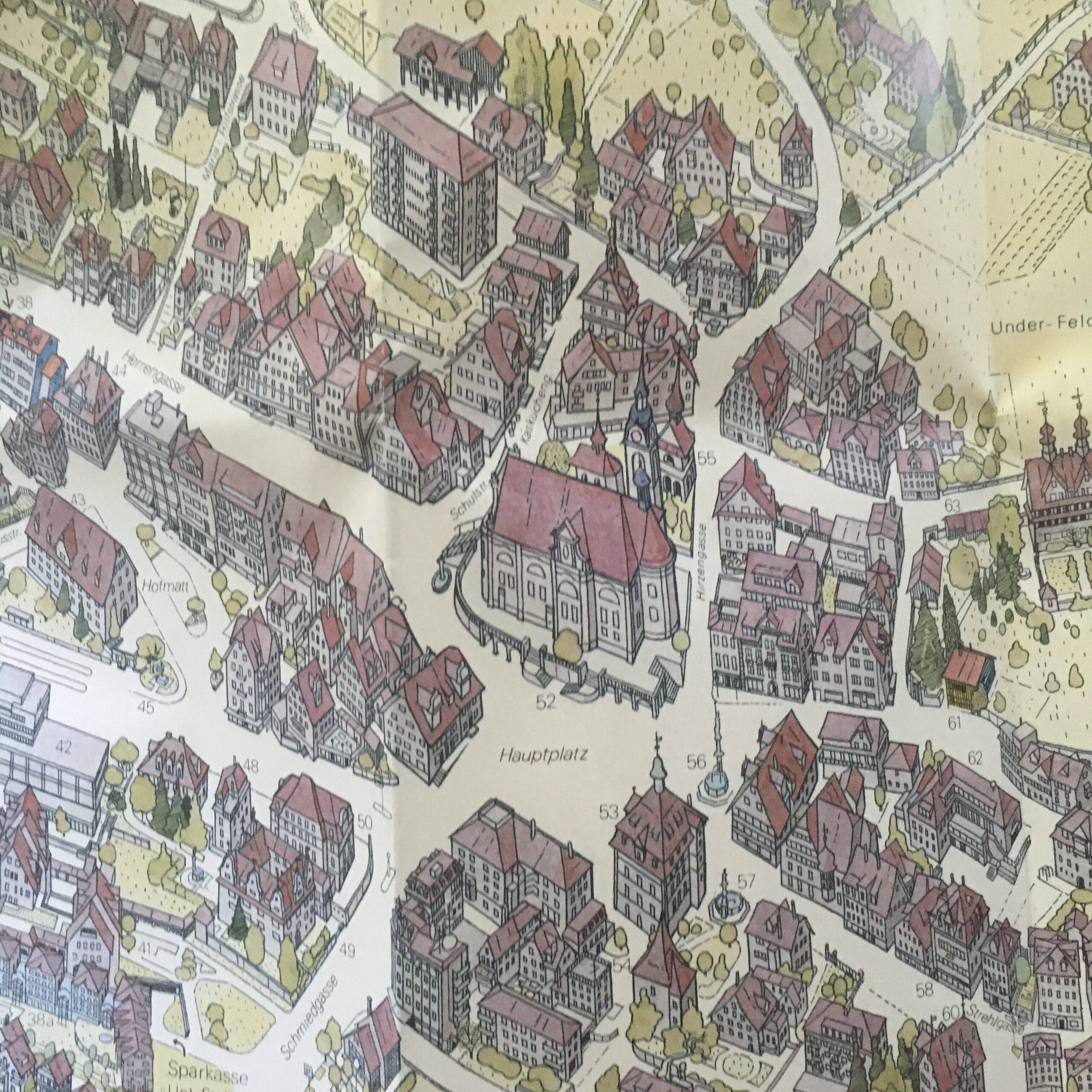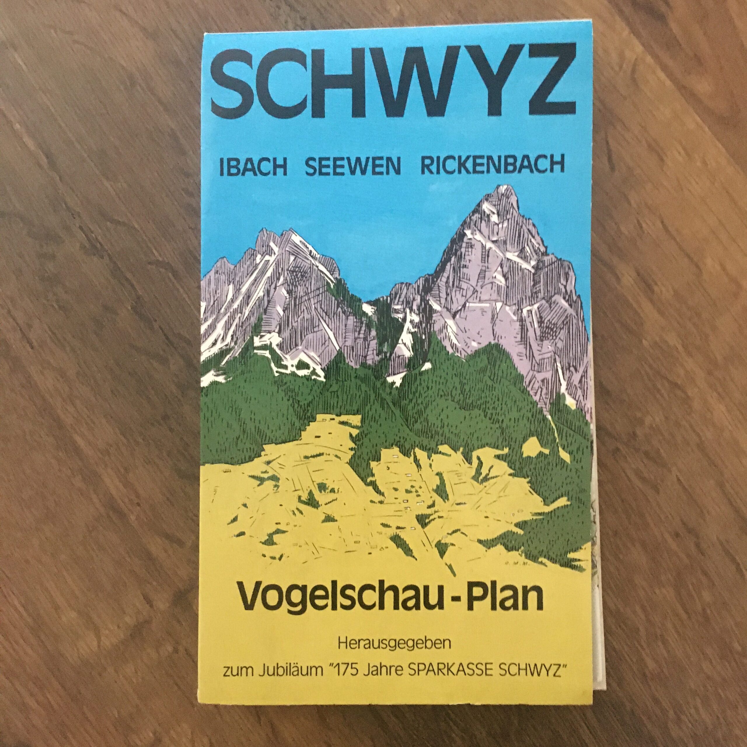 Vogelschau-Plan, Herausgegeben zum Jubiläum 175 Jahre Sparkasse Schwyz